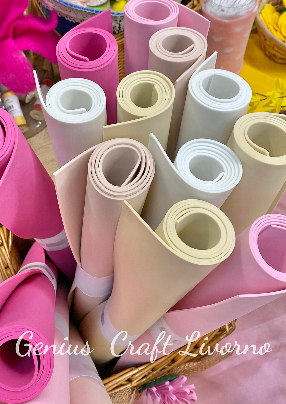 PACCHETTO GOMMA EVA 2 MM 10 FOGLI CM 30X40 IN 5 COLORI CON CARTAMODELLO ROSA